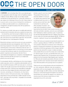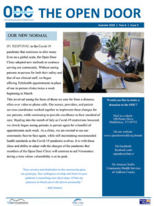 Publications Are you a journalist working on a story? Contact Heidi Sulis Executive Director hsulis@opendoormidd.org 802-388-0137 Subscribe to get our news! Leave this field empty if you're human: Annual Appeal 2023 Stories from our neighbors - please donate at opendoormidd.org/donate ...Read More Spring-Summer 2023 Marking Transitions ...Read More Fall 2022 Giving Thanks ...Read More Summer 2022 New Energy Around ...Read More Spring 2022 Great News! We are Vermont Reads 2022! ...Read More 2021 Annual Report + Winter 21-22 Newsletter You are not alone ...Read More Fall 2021 30 years of history! ...Read More Summer 2021 An honest interview. Click here to listen to ...Read More 2020 Annual Report + Spring 2021 Newsletter We have the Vaccine! ...Read More Winter 20-21 Newsletter Farewell, 2020! ...Read More Fall 2020 Update An update from Jody Brakeley, RN ...Read More Summer 2020 Newsletter Our new normal, a new intern, a new baby, ...Read More Spring 2020 Newsletter Addressing Covid-19, a farewell reflection, portraits by artist Rebecca ...Read More 2019 Annual Report + Winter 2020 Newsletter What happened at the Open Door Clinic in 2019 ...Read More Fall 2019 Newsletter Dr. Linn Larson is ODC's new volunteer medical director ...Read More Summer 2019 Newsletter Which towns in Addison County are home to most ...Read More Three Year Strategic Plan 2018-2020 Taking ODC to its 30th Anniversary! Taking ODC to its 30th Anniversary! ...Read More September 2018 Newsletter The Open Door Clinic, like many non-profit organizations, can ...Read More March 2018 Newsletter So many different facets of our community rallied behind ...Read More November 2017 Newsletter Check out how two personal adventures became fundraisers benefiting ...Read More March 2016 Newsletter Featuring the Open Door Clinic’s new dental program, 2015 ...Read More June 2015 Newsletter Our newsletter has a new name. “The Open Door” ...Read More Fall 2014 Newsletter Read about our annual appeal and a fundraising exhibit ...Read More English Español
